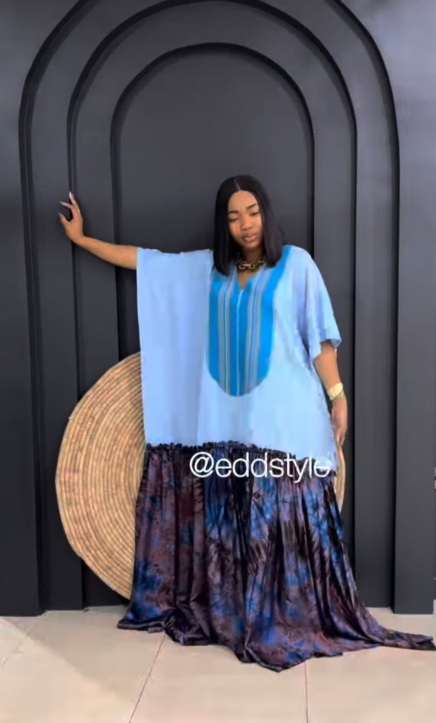 Double-breasted blazer in mixed Ankara. Notched lapels, removable obi belt. Confident, boardroom-ready flair.